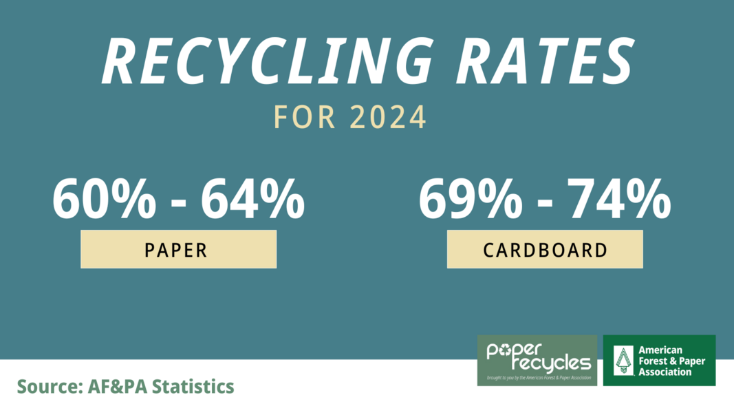 That translates to a paper recycling rate of 60%-64% and a cardboard recycling rate of 69%-74%.