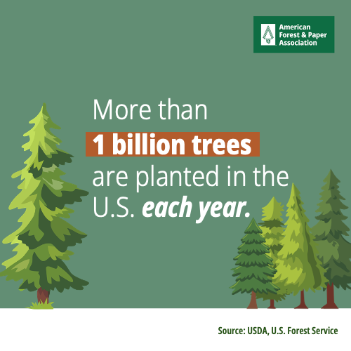 On managed forests, trees are replanted to continue the cycle of growing. More than 1 billion seedlings are planted every year in the U.S. The majority of those are planted on managed forests.